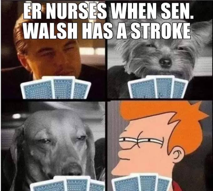 Do nurses play cards all the time at work? Ask Senator Walsh for the answer. Kidding 🙃